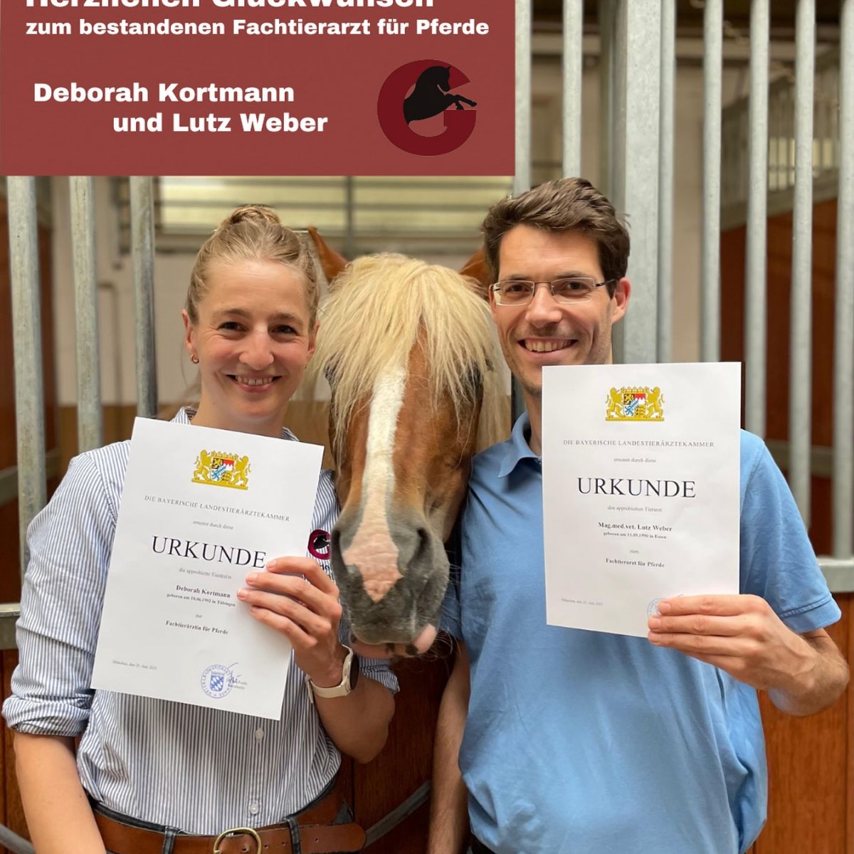Wir gratulieren unserer… 11. Juli 2025 Wir gratulieren unserer Kollegin Deborah Kortmann und unserem Kollegen Lutz Weber zur bestandenen Prüfung zum Fachtierarzt für Pferde. Seit 2021 sind sie ein fester Bestandteil unseres Teams der Pfer… weiterlesen